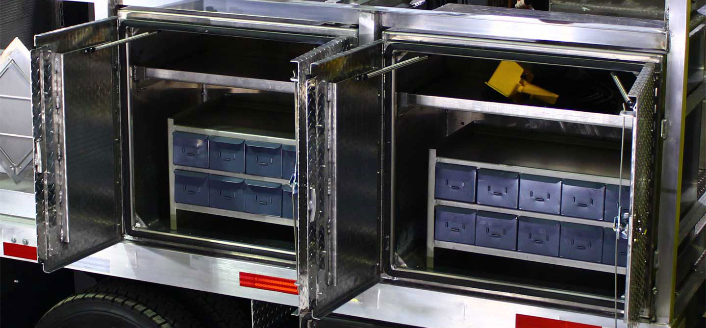 Our tool boxes are made of .125 aluminum with an aluminum diamond plate door and stainless steel hardware. These are also available in steel and stainless steel. These boxes bring a new meaning to tough. They are constructed of the highest quality materials and hardware. We are able to design and build any size box of any shape, out of any material, for any need, because each box is custom. Each seam on the box is TIG welded sealing out the elements. The opening has integral rain gutter with a tough synthetic D-type gasket on the face. This makes the box weatherproof when locked. The door itself has a Stainless Steel T-handle lock with a Stainless Steel continuous hinge and a reinforcing pan to prevent it from warping when opened. Boxes with a width of over 36" have 2 T-handle locks.